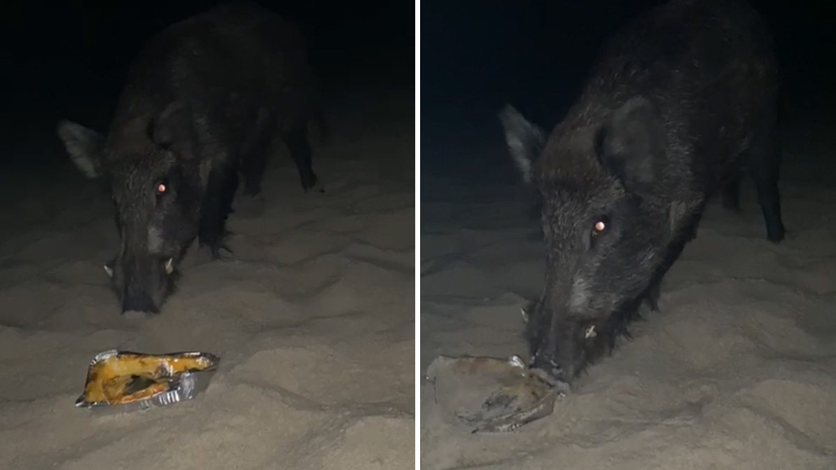 La sequía y la falta de alimento lleva a los jabalíes a buscar comida en las playas. Estas son dos de las razones, junto a el crecimiento exponencial de la población de suidos salvajes en España, por las que cada vez es más frecuente encontrar cochinos en las playas, sobre todo durante los meses más calurosos del año.