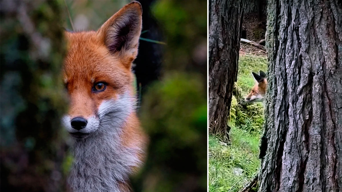 Esto significa que, allí donde no hay caza para repartir, cazan solos, además de que se enfrentan a sus posibles depredadores y a los cazadores sin la ayuda de otros ejemplares. Es lo que vemos en las siguientes imágenes, en las que un raposo avanza sigilosamente por el bosque y se asoma por detrás de un árbol. Está analizando la situación, ya que las ladras de los perros de rastro suenan cada vez más cerca. Esto significa que se aproximan. Unos segundos después, el zorro decide huir a toda prisa. No hay tiempo que perder e intentará poner tierra de por medio entre su ubicación y esas ladras que resuenan a pocas decenas de metros.