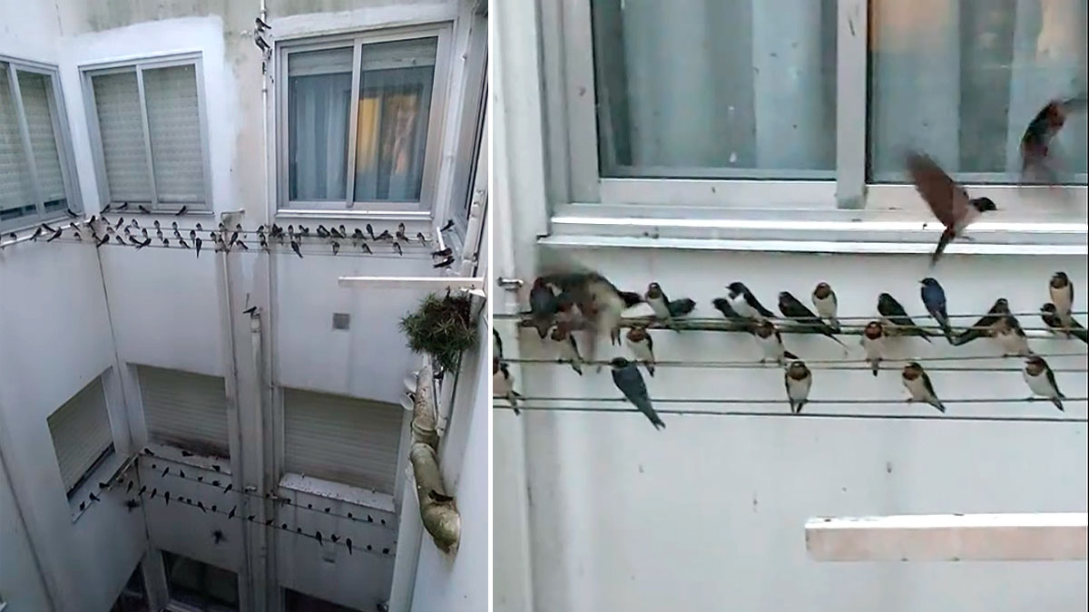 Asomarse a la ventana y disfrutar de una multitudinaria reunión de golondrinas. Este es el privilegio de una comunidad de vecinos gallegos que cada año por estas fechas acoge a decenas, cientos de ejemplares de golondrina que pasan la noche en las cuerdas de los tendales de ropa.