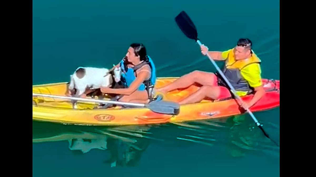 Navegaron 10 minutos con la cabra en la proa del kayak para llevarla hasta tierra firme