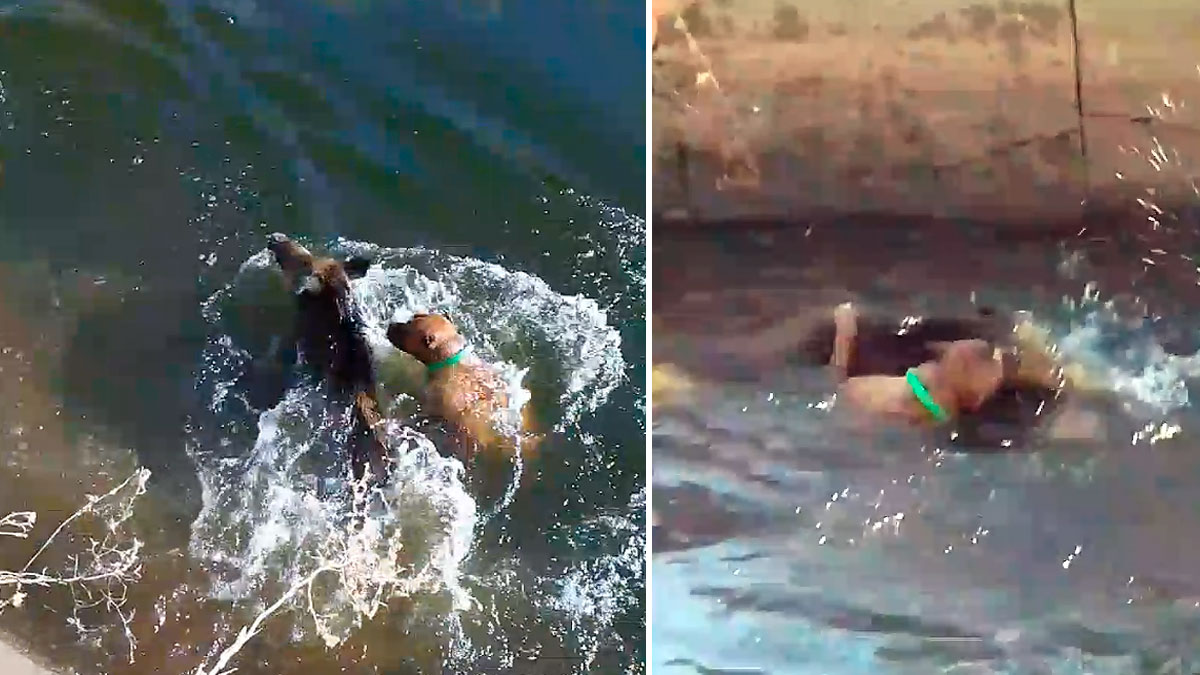 Una vez detectado el cochino en la cama, los perros se lanzaron en su persecución durante más de tres kilómetros. Cuando el jabalí iba a ser atrapado por los canes, se arrojó al agua. Los alanos no se lo pensaron dos veces para seguir los pasos del jabalí. Ya en el agua, tuvieron que nadar más de un kilómetro para agarrarlo. Una vez atrapado el cochino, el cazador y un amigo que lo acompañaba sacaron del canal al jabalí y a los perros.