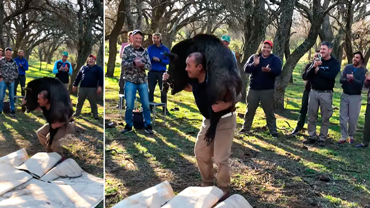 El cazador que protagoniza estas imágenes es Ariel, un argentino de La Pampa especialista en la caza de jabalíes armados con largos colmillos. Le conocemos de eventos similares anteriores en los que se ha impuesto entre otros fuertes competidores en competiciones organizadas con motivo de la celebración del cumpleaños de un compañero de caza.