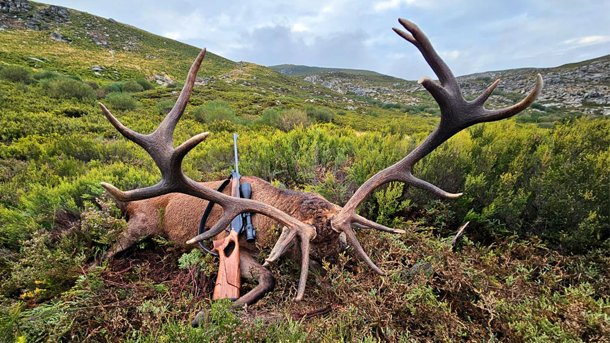 El cazador pontevedrés abatió al venado a más de 400 metros de distancia en un exigente rececho en una finca abierta de la Sierra de Orense.