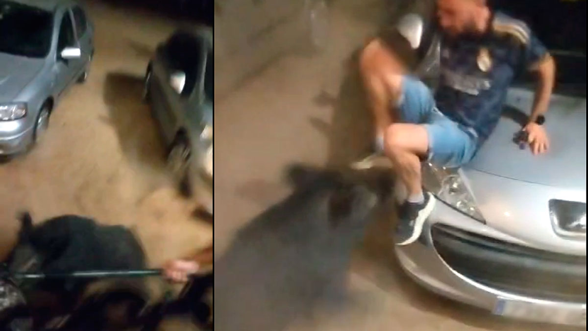 Un jabalí ataca salvajemente a un perro y a su propietario en un parking público