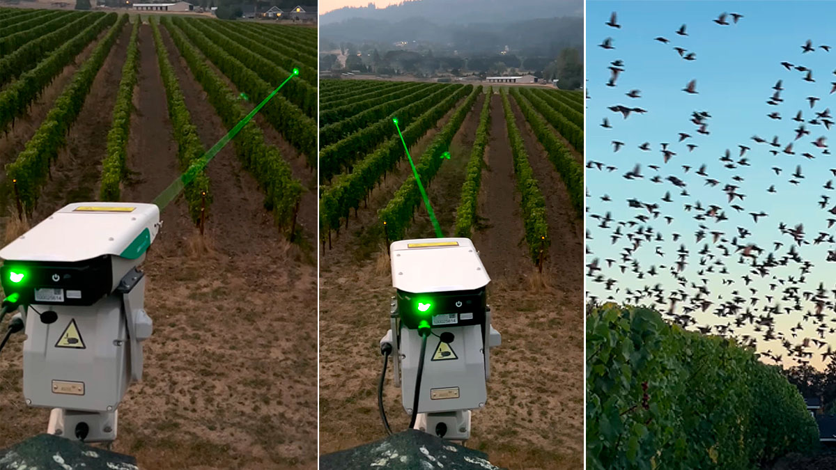 Un espectacular láser para evitar que los pájaros se coman las uvas