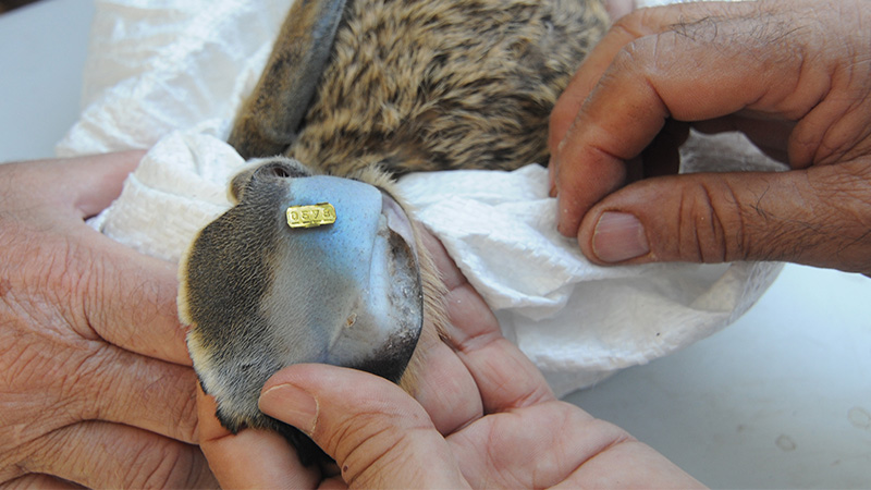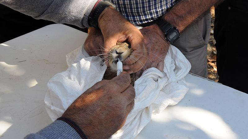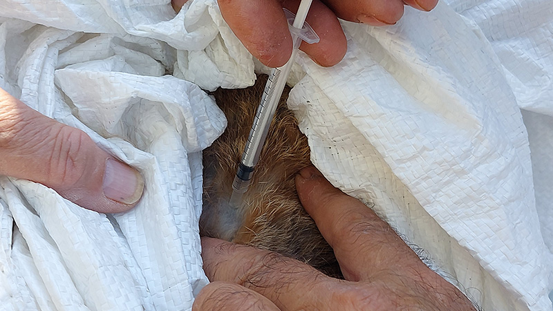 Vacunando a la liebre capturada.