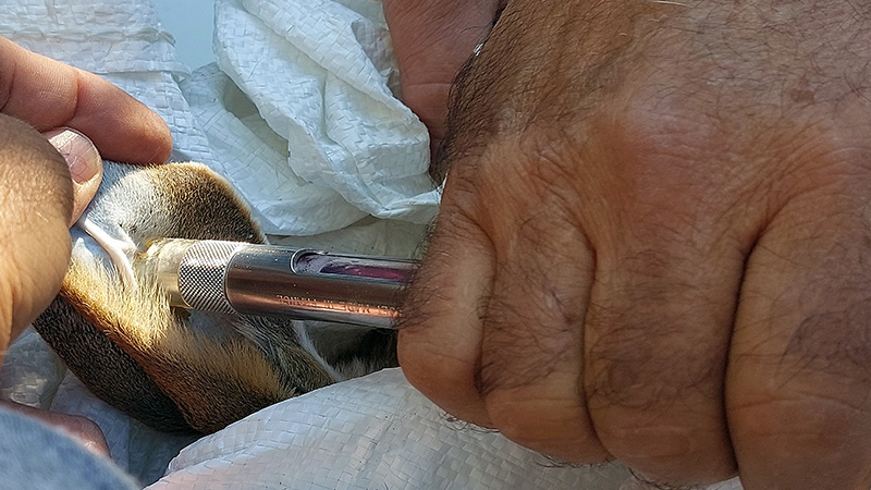 Desparasitando externamente a este ejemplar.