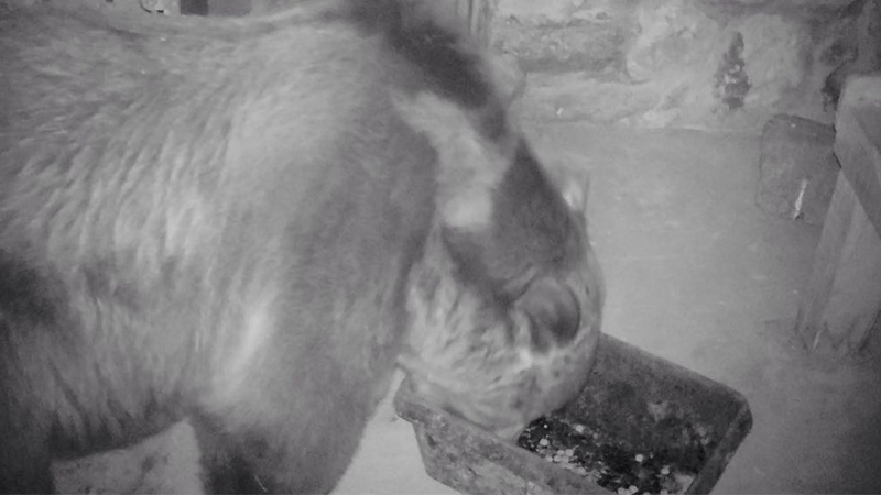 El depredador se subió a la parte superior de la edificación para colarse en el interior. Su propósito era comerse el pienso de perro que alimenta a los mastines españoles que protegen el ganado del propietario de la casa. Hablamos con el dueño de la construcción.