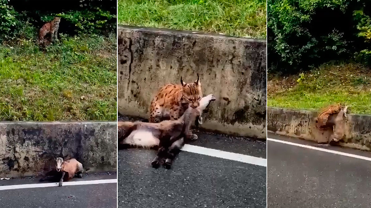 Una de ellas apunta a que la presión predatoria del lince boreal ha provocado que el rebeco invada la carretera y haya sido atropellado por un vehículo. La otra teoría es que el lince ha aprovechado la colisión del bóvido con un coche para atraparlo.
