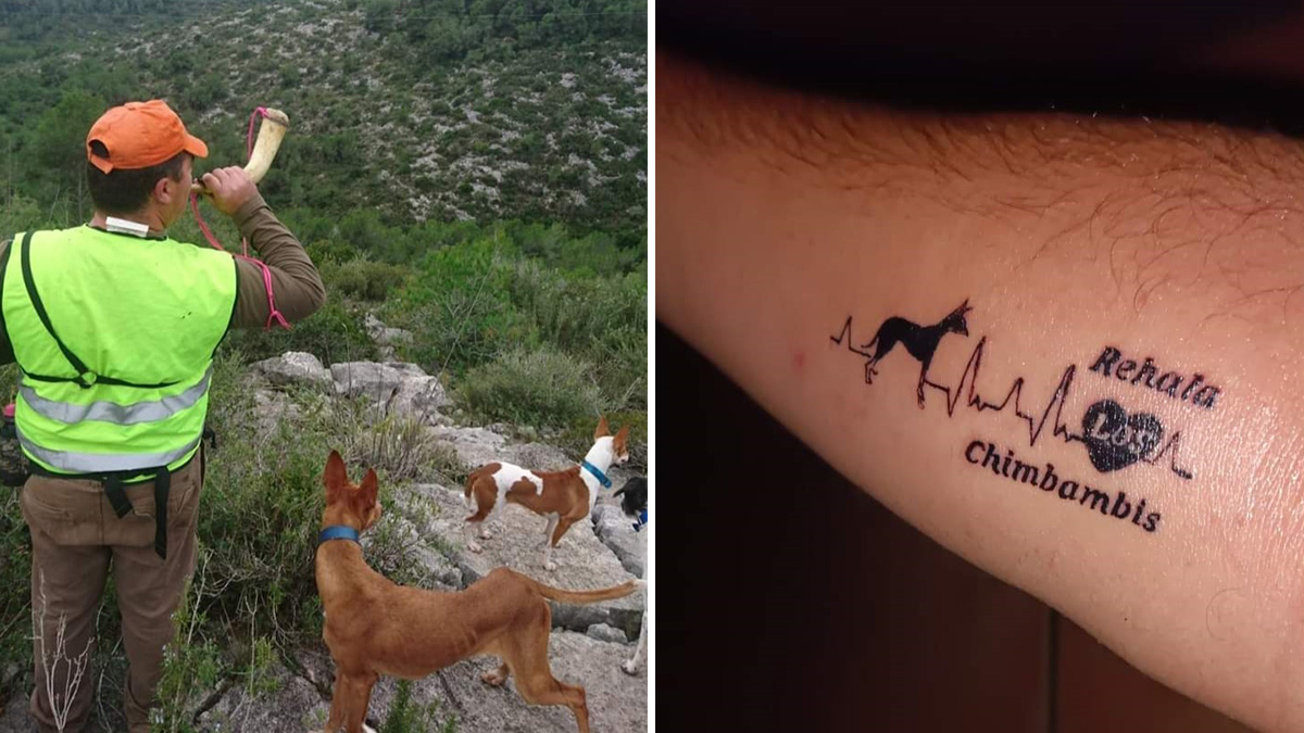 Ángel llevaba varios años pensando en homenajear a sus perros con un tatuaje, pero no se decidía. Jonathan Lorite, primo del cazador, como regalo de boda le ofreció hacérselo y este aceptó. Este año el perrero lucirá en las jornadas de caza de la Colla Jabalí Anoia su tributo a Tara, Voz de Pito, Tula, Kira, Marquesa o Duquesa, por citar algunos de los nombres de los perros de caza que han compartido su vida con la del rehalero.