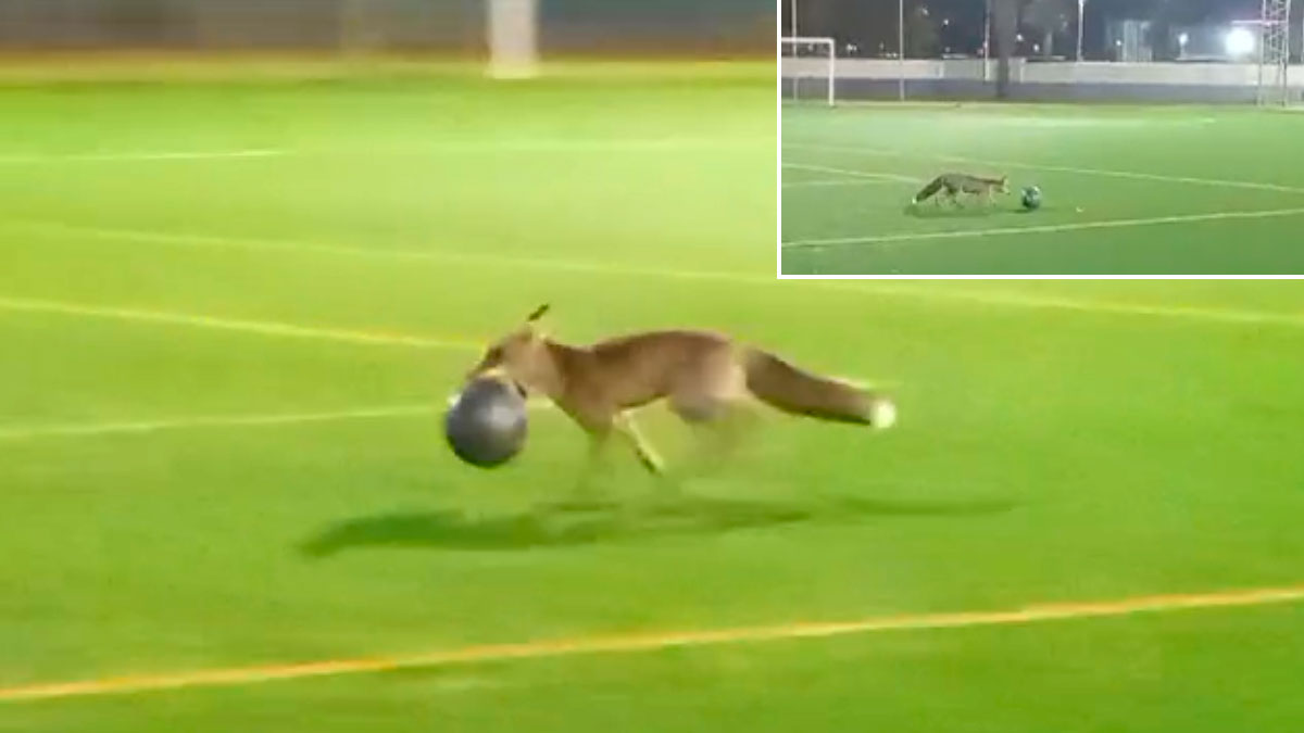 Pese a la presencia de estos, el cánido salvaje trató de llevarse uno de los petos que estaban en el césped. Al no lograr su objetivo, se marchó por donde vino. Para sorpresa de los presentes, a los cinco minutos regresó al campo. En esta ocasión, con la intención de llevarse una pelota. Cogió el balón con la boca y salió corriendo con él. Únicamente las vallas que delimitan el recinto evitaron que se llevara el esférico.