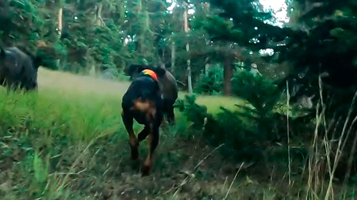 Estamos ante una se las partes de la caza de las que no teníamos grabaciones hasta la llegada de las cámaras corporales de los perros. Estas escenas resultan tremendamente subjetivas, llevándonos directamente al momento del acoso a la piara de jabalíes, que huye solo unos metros por delante de los experimentados rastreadores. Su trabajo consiste en dirigirlos hacia los cazadores, no en agarrarlos. Es la misión de esos sabuesos de Transilvania, también conocidos como perros de rastro húngaros, una raza muy extendida por países como Grecia o Turquía debido a sus excelentes cualidades venatorias. Son muy capaces de trabajar en solitario, aunque muchos aficionados a la caza del jabalí utilizan parejas o más ejemplares. Su altura hasta la cruz se sitúa entre 55 y 65 centímetros a la cruz y los que más la conocen destacan su capacidad “extraordinariamente constante para el galope”.