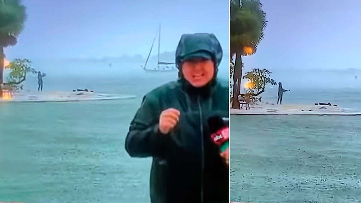 Las imágenes están sorprendiendo al mundo al recoger casi de manera inesperada una escena sorprendente. Un operador cámara de televisión de una cadena norteamericana que grababa al reportero informando sobre el avance del huracán Milton se centra en lo que está sucediendo al fondo del encuadre de la imagen.