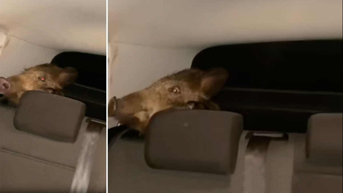 El inexplicable vídeo de un jabalí viajando en la parte trasera de un coche