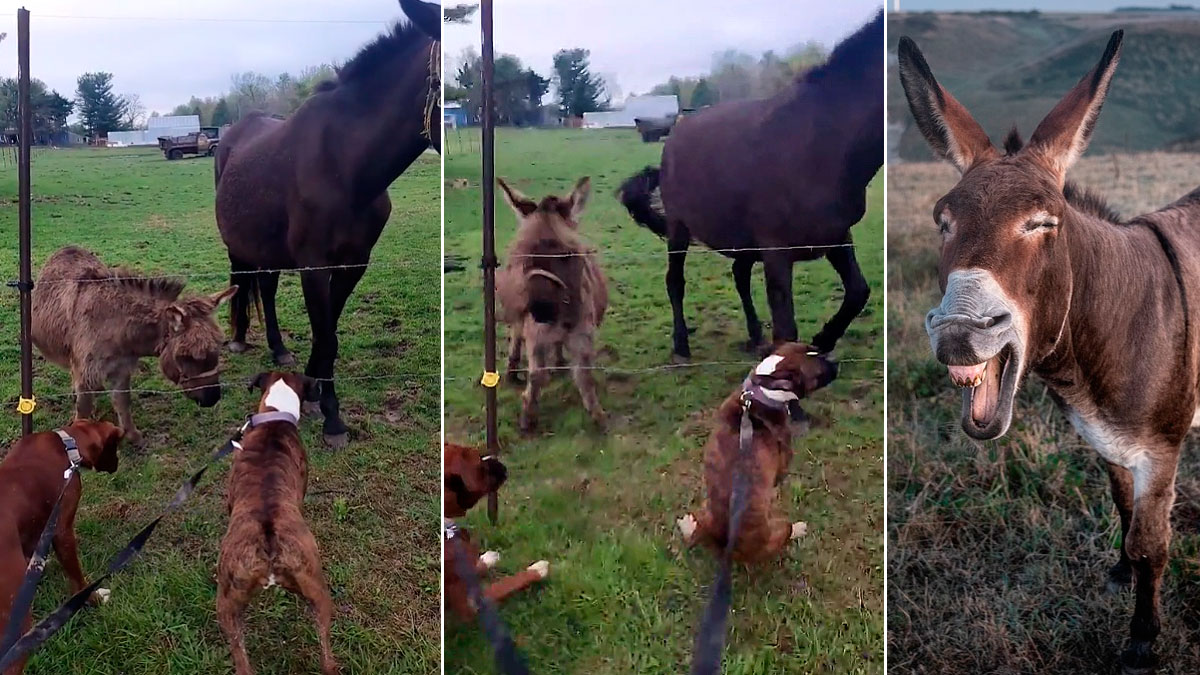Un burro ‘ríe a carcajadas’ cuando un perro recibe un calambrazo de una alambrada electrificada