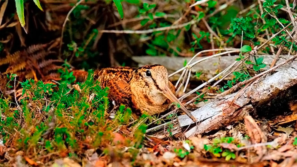 Una becada enganchada a la mata y que casi no consigue arrancar a volar