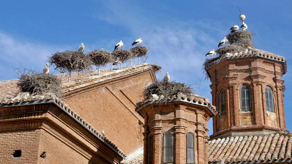 La mayor colonia de cigüeñas blancas del mundo se ubica sobre un solo edificio construido en Alfaro (La Rioja).
