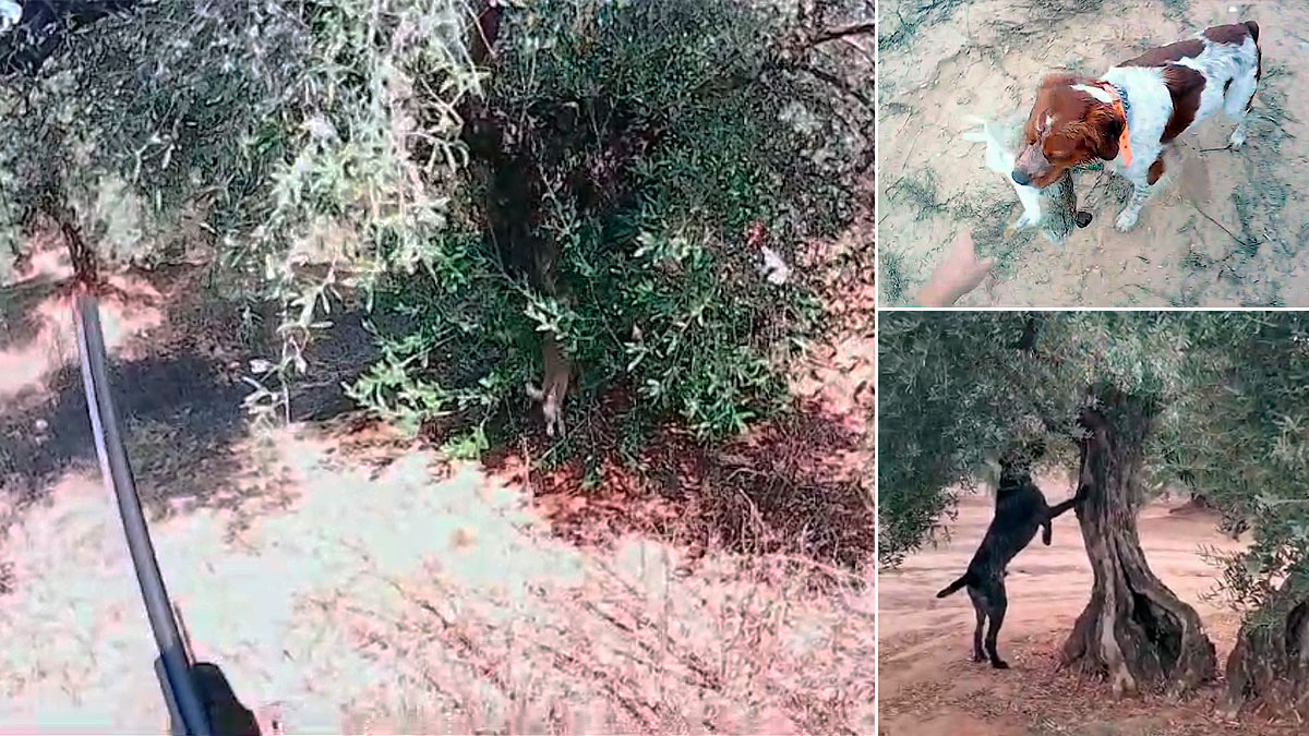 Un cazador jiennense comparte con los usuarios de Club de Caza cinco espectaculares lances a conejo con perros de muestra. El instinto de supervivencia de los lagomorfos, ante la ausencia de vegetación, les lleva a buscar refugio en las ramas más altas de los olivos.