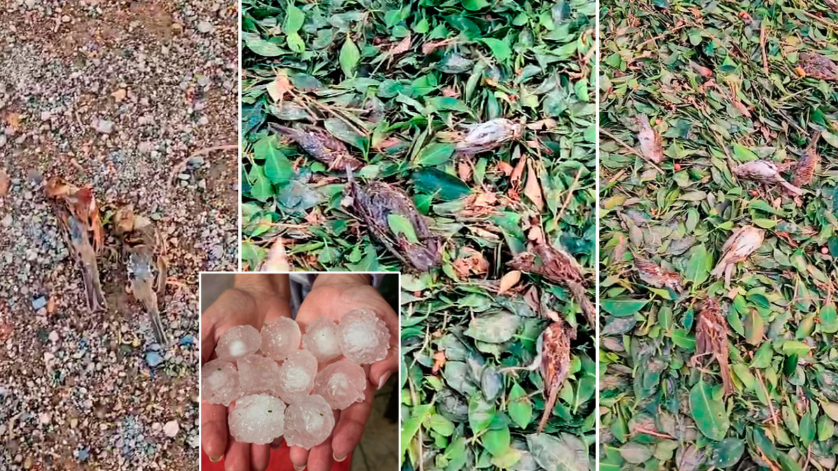 “Yo no he visto esto nunca. Todos los pájaros, muertos”. Como nos muestra el autor del vídeo, las aves, casi todas gorriones y algún estornino, estaban refugiados en un frondoso árbol. Pero ni la abundante hoja ni las ramas les sirvieron de escudo ante las piedras de granizo que cayeron ayer en la provincia.
