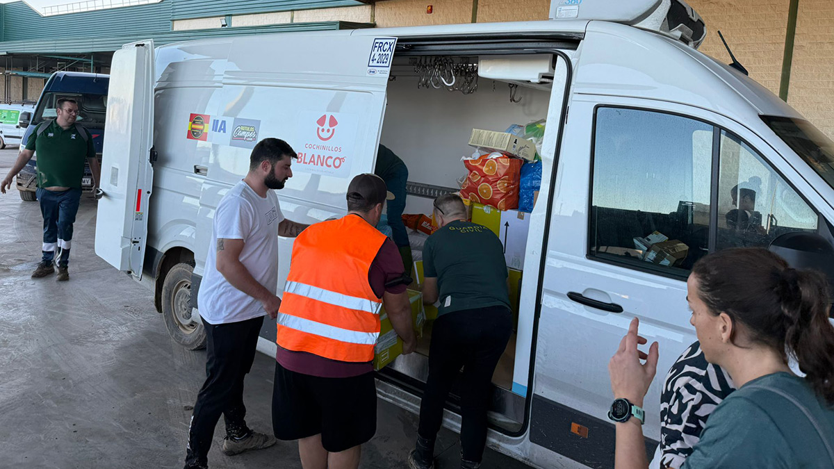 Dos camiones frigoríficos y ocho furgones. Un total de unas 40 toneladas de productos, sobre todo agua embotellada, alimentos imperecederos, pero también ropa, sobre todo de bebé, así como mantas, pañales de adulto y de bebé… No había tiempo que perder. Y en eso el responsable de Cárnicas Carlos Blanco cuenta con una dilatada experiencia. Ha sido a base de trabajo, esfuerzo y acumular años de aprendizaje que ha convertido su empresa en un referente del sector autonómico y nacional. Gracias a él y a Abel Sanz, otro empresario de Arévalo, a la ayuda de la empresa embotelladora de agua, a la inestimable labor de organización y logística de Aitor Ortega, desde la Fundación de Guardias Civiles Solidarios, además de los vecinos del municipio abulense, el convoy estuvo preparado en tiempo récord. El pasado viernes comenzaban a organizar y el sábado de madrugada salían a la carretera cargados de productos muy necesarios para la gente afectada por la DANA.