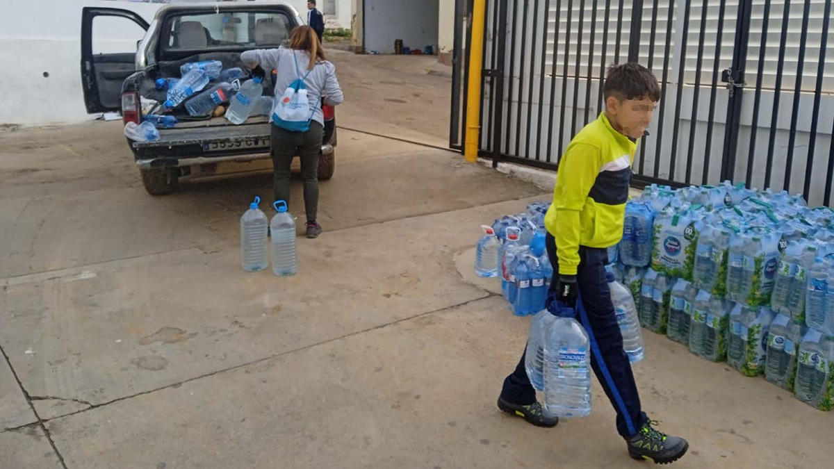 Rafa Gorbano, también cazador valenciano, amigo de Javier, está llevando agua potable con su furgoneta a Sot de Chera.