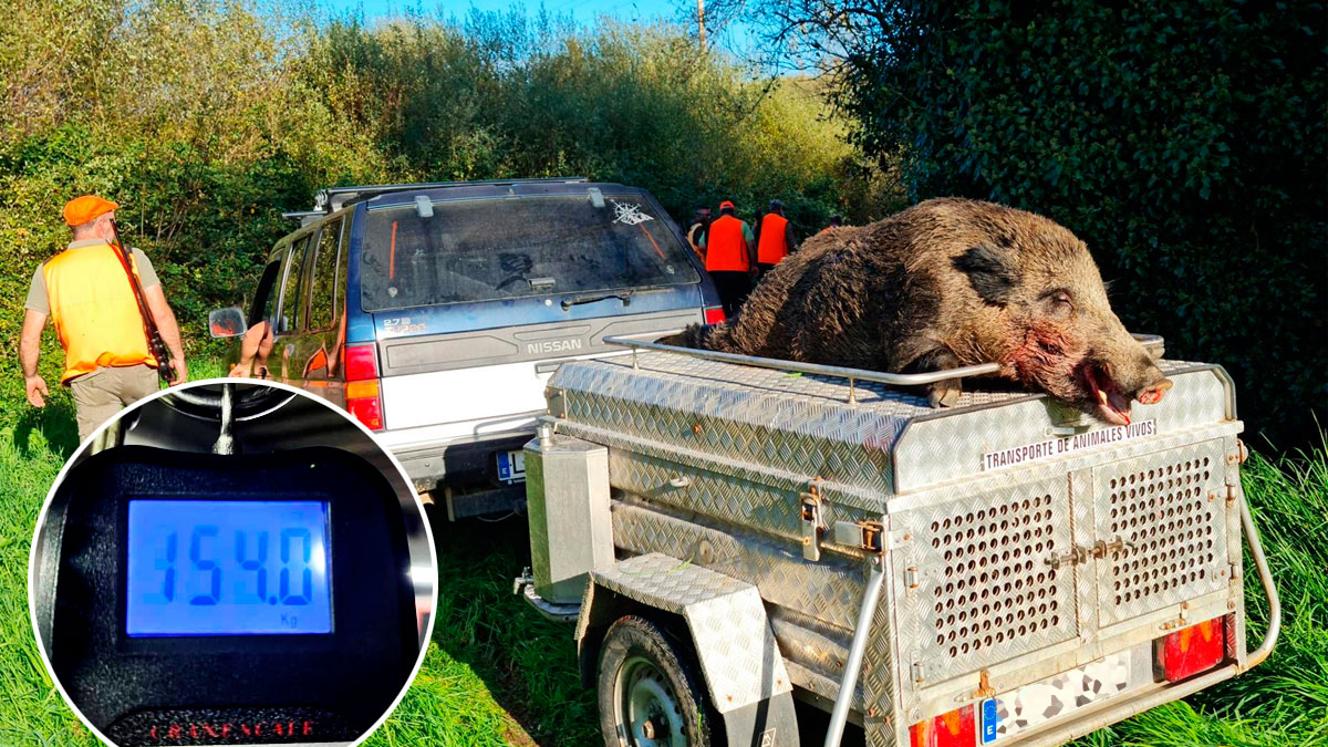 Cazan un jabalí de 154 kilos y 22 centímetros de colmillo en La Coruña