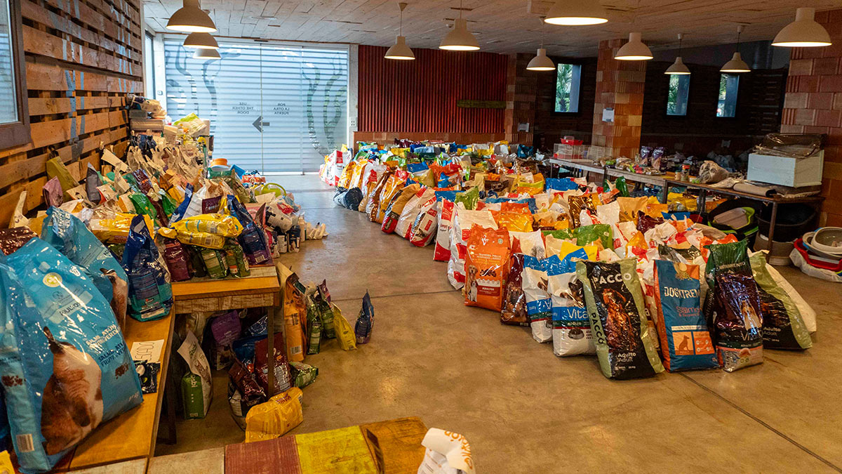 Foto portada: Imagen del punto de recogida de ayuda para animales de compañía habilitado en las instalaciones del BIOPARC Valencia.