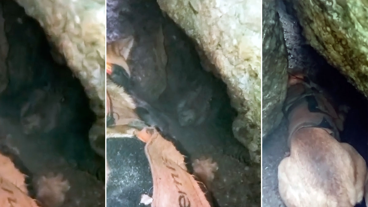 El jabalí fue perseguido por los perros hasta la grieta