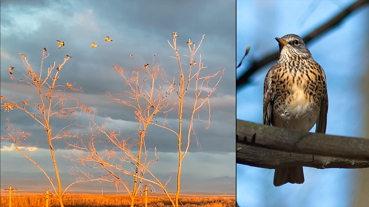 Suena el canto del zorzal y a la llamada acuden numerosos ejemplares que se posan en las ramas de varios árboles jóvenes.