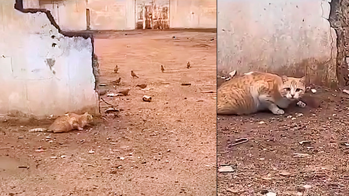 Le arruinan la caza a un gato que acechaba a varias tórtolas