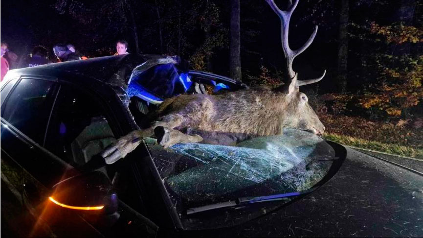 Pocos accidentes resultan tan impactantes como el que acaeció el pasado viernes a las 19:09 horas en una carretera belga. Un ciervo de considerable tamaño y grandes cuernas ocasionó un grave accidente con un vehículo de marca Audi que circulaba por una carretera del municipio de Chevaudos, ubicado en la provincia de Luxemburgo.