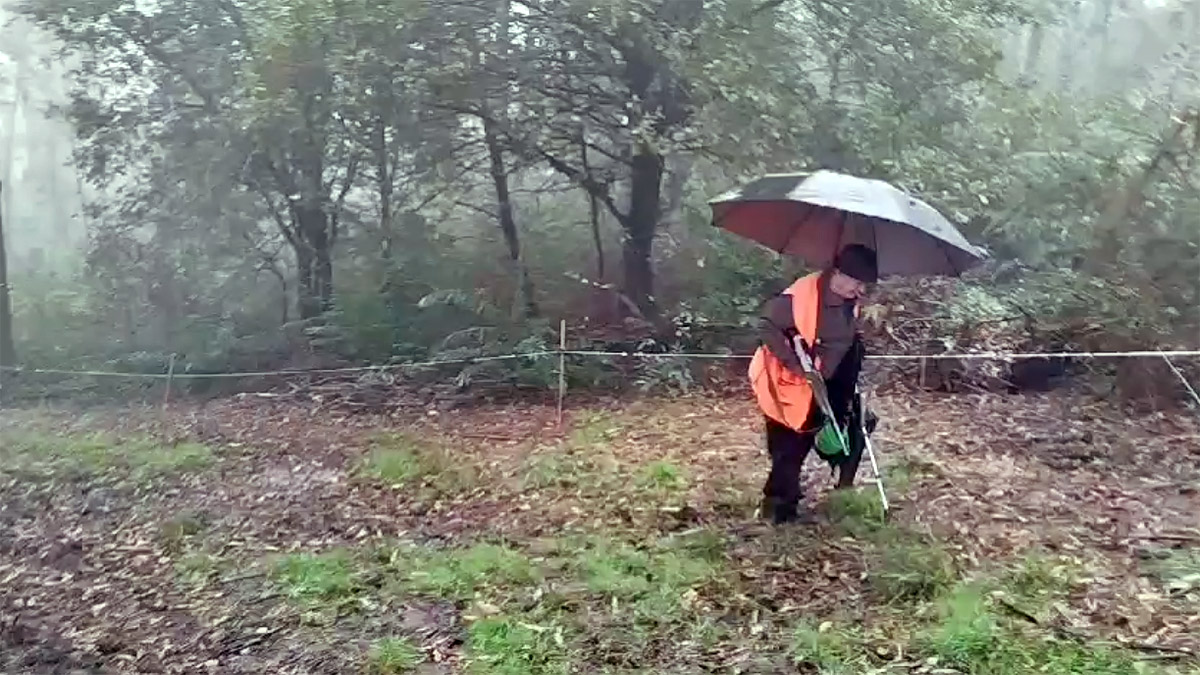 El domingo pasado, Manolín Fernández, cazador de 68 años nacido en Santibáñez, municipio de Villacarriedo, abatió un jabalí tras más de 6 horas bajo una intensa lluvia y un fuerte viento. Aguantó estoicamente el temporal para premiar el trabajo de los perros de rastro de la cuadrilla La Élite de Santibáñez.