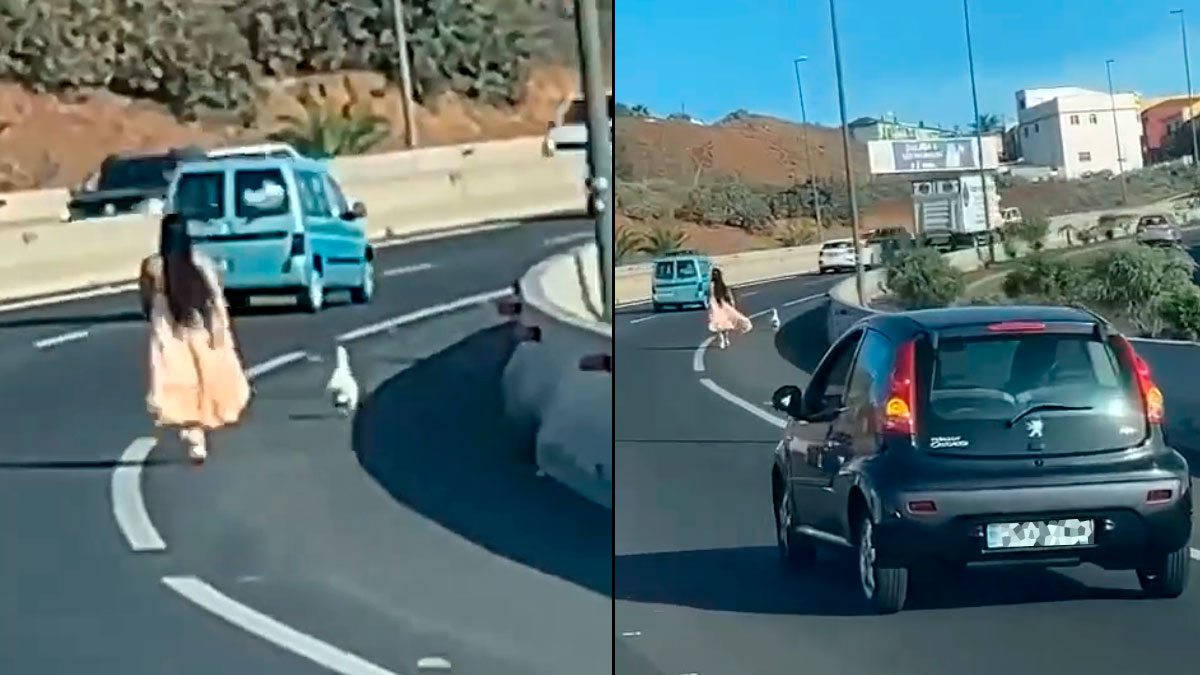 La autovía que conecta Norte-Sur de la isla de Tenerife se convirtió en el marco para una escena surrealista protagonizada por una mujer y un ave. Hemos tenido conocimiento de los hechos gracias al vídeo que grabó uno de los atónitos conductores que presenció la temeridad de la mujer. Al ver que un pato blanco avanzaba por el arcén del tramo de autovía que conecta la TF-1 y la TF-5, que circunvalan parcialmente Santa Cruz de Tenerife, no lo duda un instante y detiene su pequeño turismo y lo deja en el carril derecho de la vía. Activó los cuatro intermitentes, pero esto no exime a la acción de ser considerada una grave infracción de tráfico que pone en peligro a todas las personas que transitan por la carretera y que de hecho causó retenciones en la carretera.