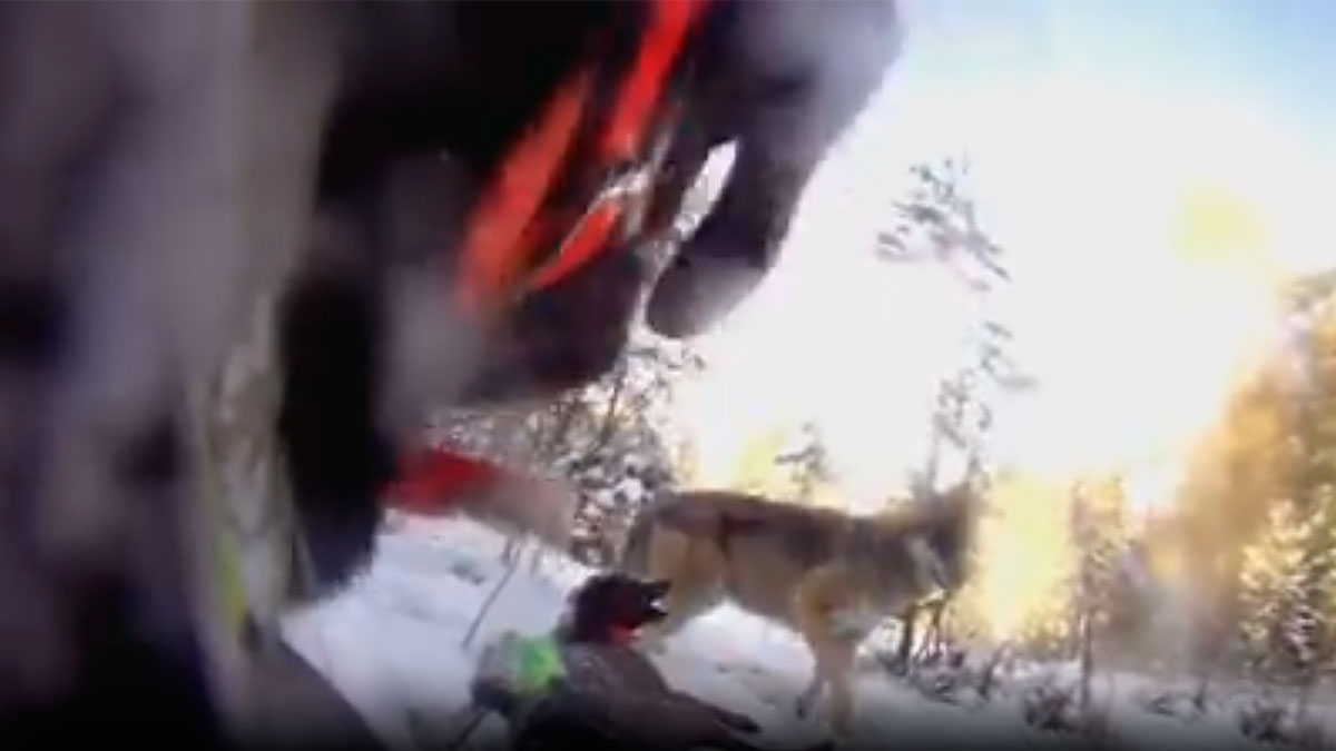 Uno de los problemas que más preocupan a los cazadores en aquellas regiones en las que habita el lobo es sufrir un ataque como el que registra la cámara on board que lleva uno de los canes que rastrea otros animales en una zona completamente nevada del norte de Europa.