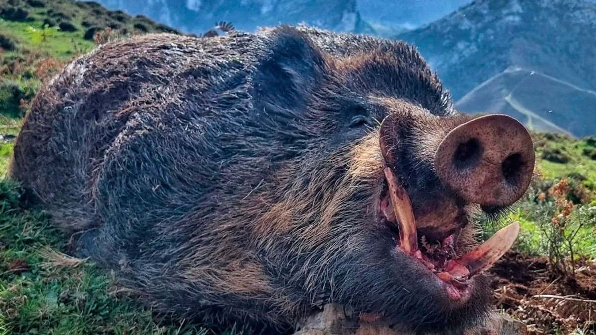Cazan un jabalí con unas amoladeras descomunales en Asturias
