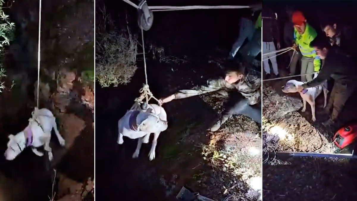 Rescate de película de un perro de rehala caído en un pozo
