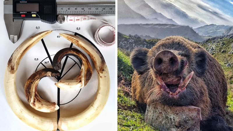 La medición en frío del trofeo le otorga una cuantía, según confirma David Fernández, creador de la cuenta de Instagram Batidas Jabalí, a la redacción de Club de Caza, de 22,5 centímetros de longitud y 2,5 de grosor en los colmillos y un perímetro de amoladera de 7,4. La izquierda forma un círculo casi perfecto y presenta 11 centímetros de desgaste.