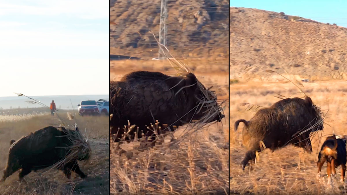 Estas inusuales imágenes han sido publicadas por el cazador otomano Yaman Avcinin Postasi en su página de Facebook. El especialista en la caza de jabalíes con perros es uno de los más seguidos en la red social, ya que cuenta con más de 300.000 seguidores.