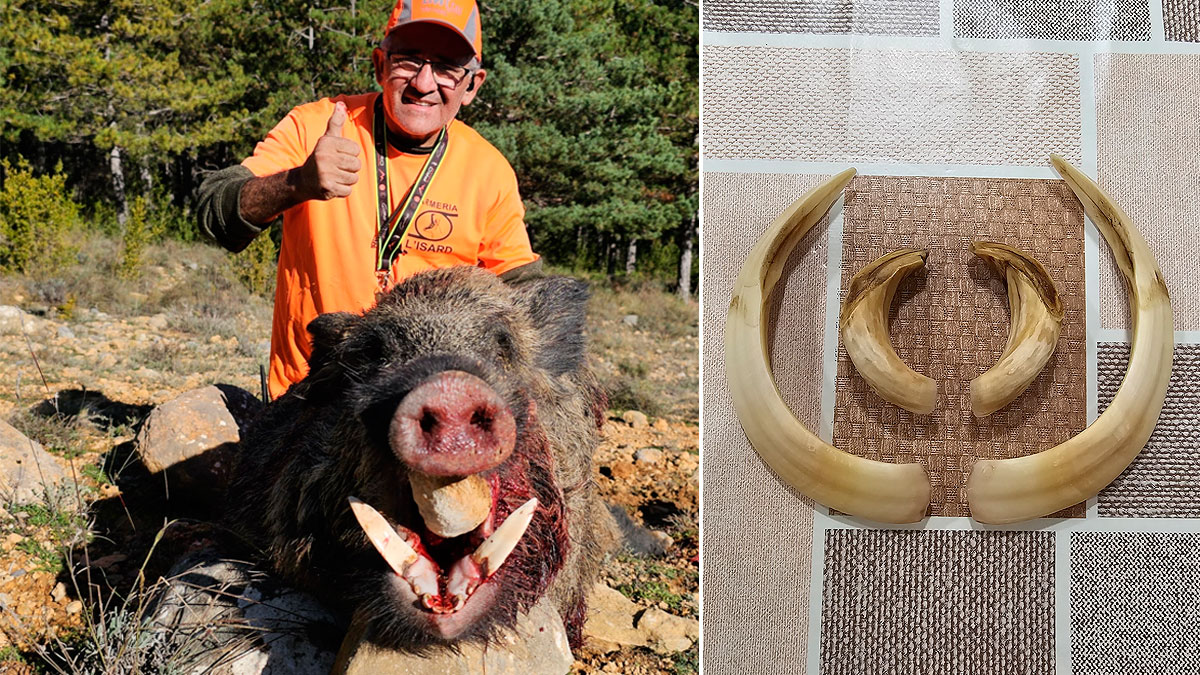 Adrián nos cuenta que es uno de los cochinos de más peso que ha cazado su padre en medio siglo en la caza. No pudo ser pesado, pero según la experiencia del montero y esperista, superaba con creces los 120 kilos. El trofeo del macho es merecedor de su porte. La medición en verde de los colmillos es de 19,4 centímetros de longitud y 2,36 de grosor en la navaja derecha y de 19 y 2,3 en la izquierda. El colaborador habitual de Club de Caza desea aprovechar estas líneas para agradecer a su padre los valores que le ha inculcado y que le haya iniciado como cazador.