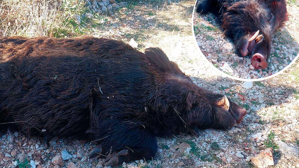 Caza al salto un jabalí de 165 kilos y 26 centímetros de colmillo