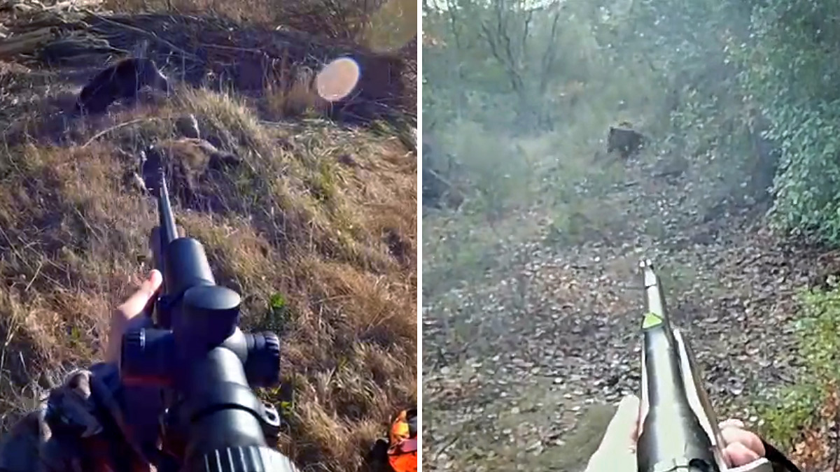 Los cazadores que portan el arma en estos tres lances inmortalizados por una cámara GoPro son José Gámez, colaborador habitual de Club de Caza, y Georgi Marcof, apodado El Búlgaro, debido a su procedencia. El primero caza habitualmente con la cuadrilla de jabalineros de Sant Hilari Sacalm, mientras que el segundo caza en Aragón.