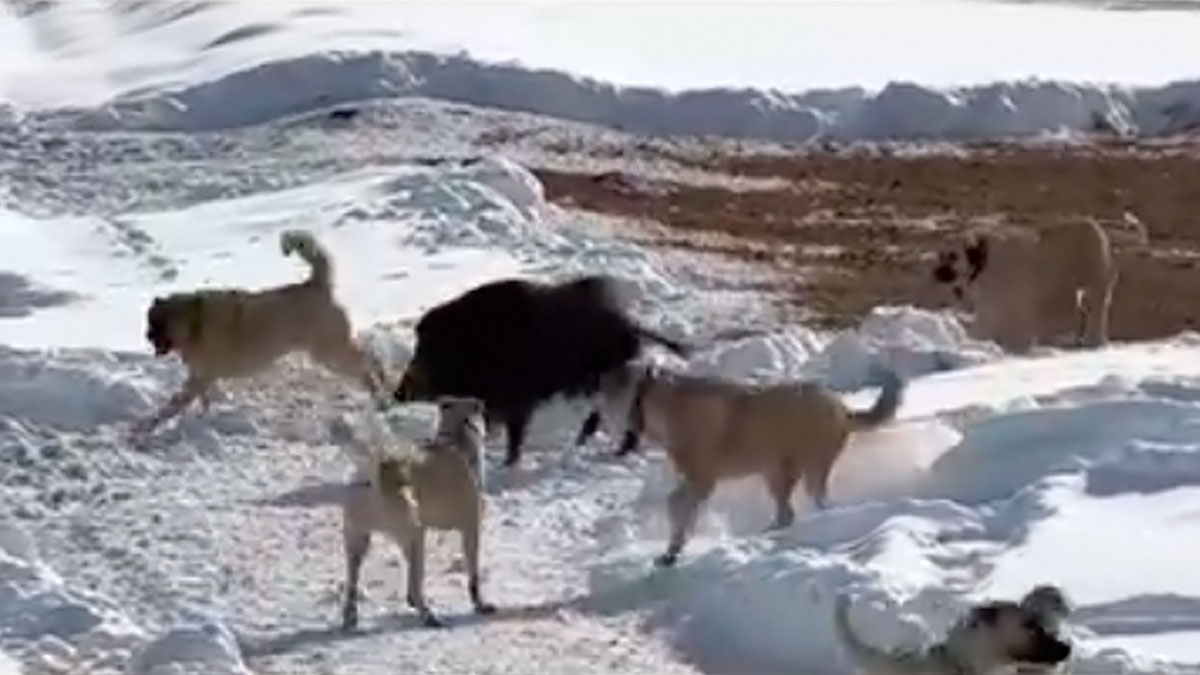 El mundo al revés: un jabalí persigue a ocho kangales turcos