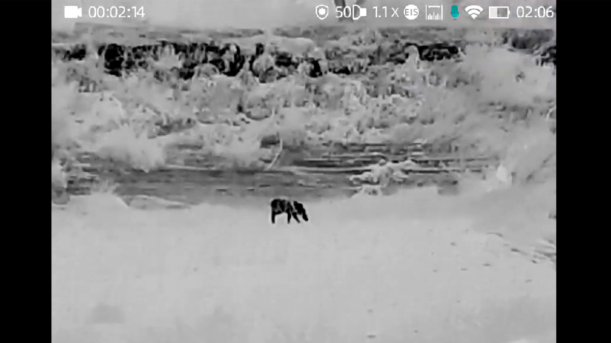 Pedro Cano, creador del grupo de Facebook Visión térmica y nocturna y colaborador habitual de Club de Caza, no tenía constancia de la existencia de este macho en la zona. Se vio sorprendido por su aparición en un antiguo cultivo de ajos, mientras observaba una piara de muflonas con un monocular térmico ThermTec modelo Wild 350D.