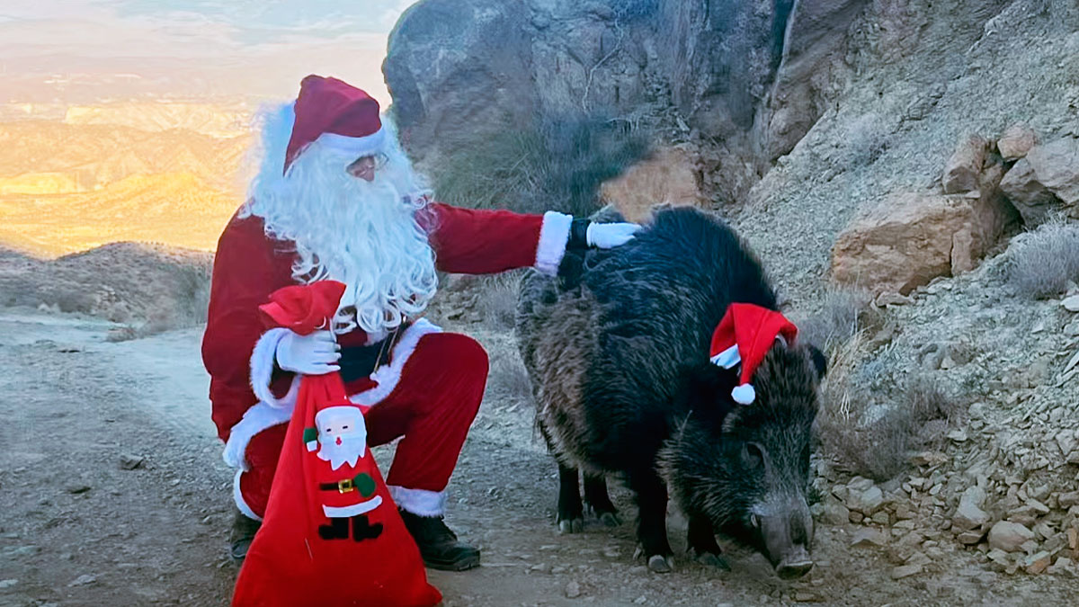 Ataviados con el traje de Papá Noel y un gorro, el Guarda y el cochino han recorrido varios kilómetros, hasta llegar a las calles de Tabernas. La tarde del señalado día 24, el profesional se subió en una carroza e hizo las delicias de críos y mayores.