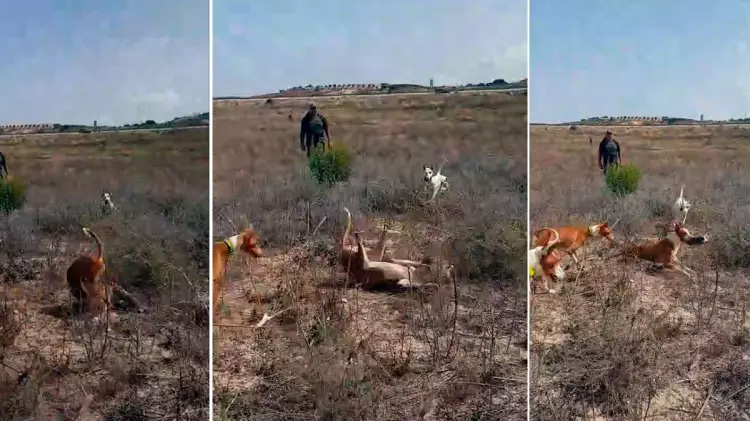 Los perros han detectado las emanaciones del conejo. Está oculto entre la vegetación, pero ha sido descubierto y el grupo se prepara para intentar cubrir todas las posibles vías de escape del lagomorfo. El lance culmina cuando el animal intenta huir y uno de los podencos ibicencos se lanza con todo lo que tiene a embocarlo. Y lo consigue realizando una espectacular voltereta. Sin duda, uno de los vídeos de caza con perros del año que ahora acaba.