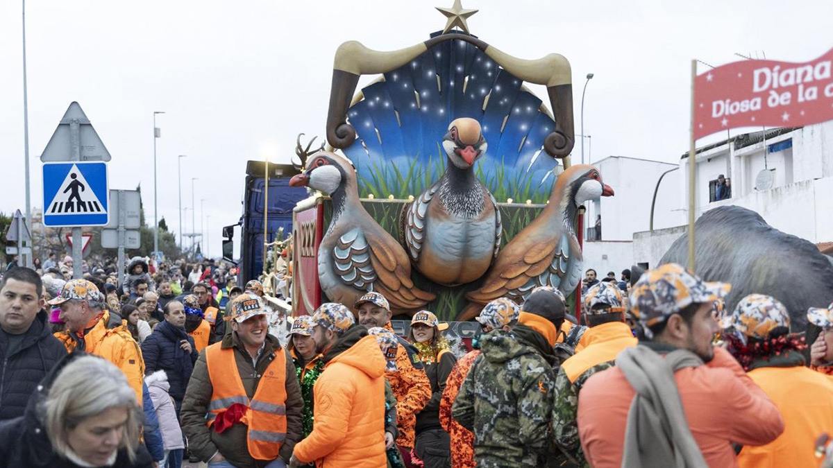 A las 18 horas comenzaba el espectáculo con una divinidad que inauguraba el desfile de 15 carrozas: la diosa Diana Cazadora, patrona de los apasionados a la venatoria. Junto a ella, rehaleros, arqueros, aficionados a la menor, a la mayor, sus hijos y familias completas.
