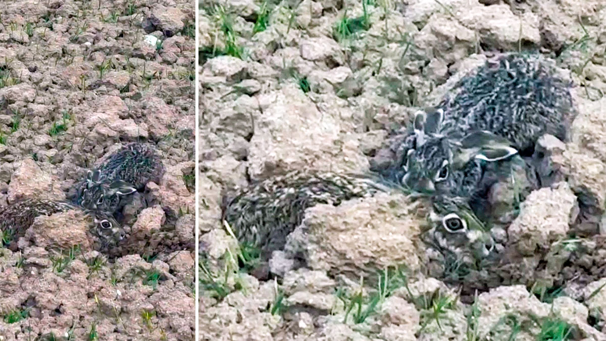 El reputado galguero señala a la liebre como una especie de hábitos solitarios excepto cuando está en celo o criando. Las dos rabonas fueron vistas en la cama por un galguero castellano leonés en el transcurso de una jornada de caza en Castilla y León. Ante lo insólito del hecho, se aproximó a ellas para inmortalizar la imagen del macho y la hembra en la tierra labrada.