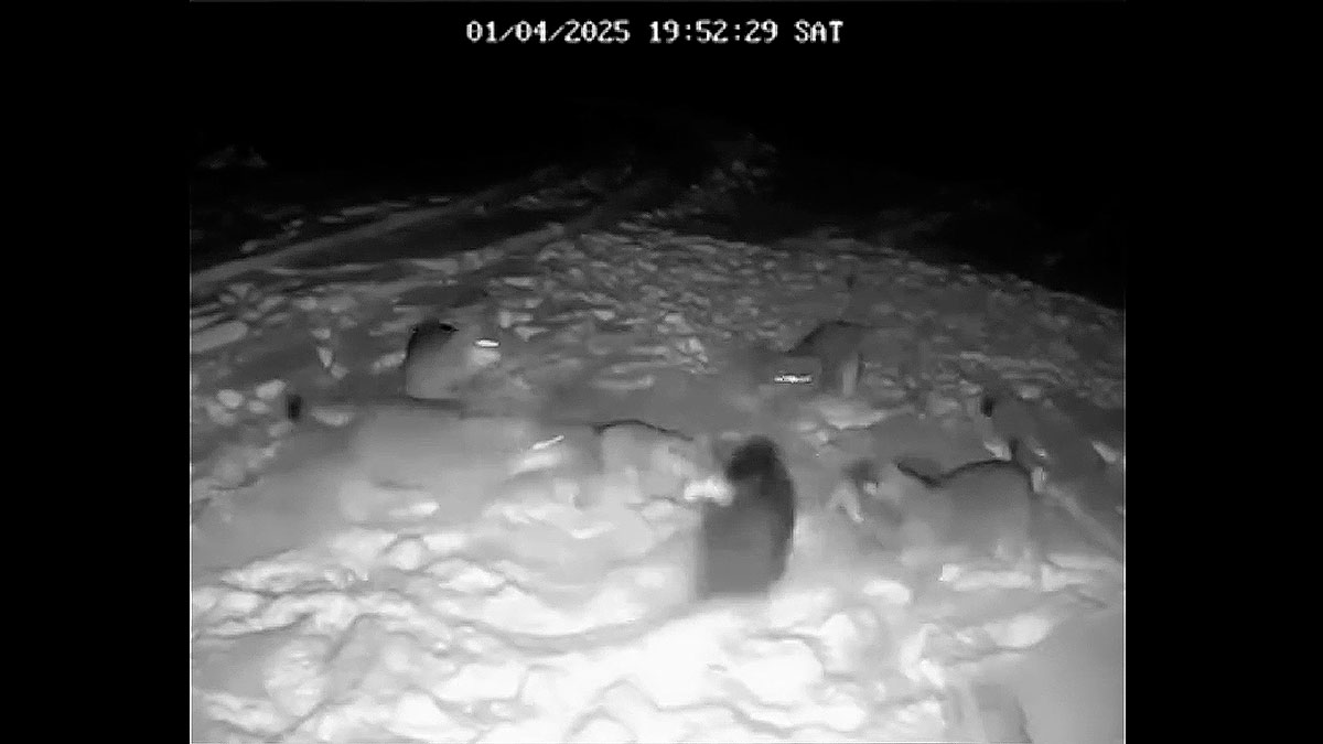 Una cámara de fototrampeo estratégicamente colocada se convierte en testigo de primera fila de un infalible ataque de una manada de lobos sobre una piara de jabalíes en la que conviven varias hembras adultas acompañadas de sus crías. Y uno de estos ejemplares se convierte en el objetivo de uno de los depredadores de mayor tamaño de este grupo de, al menos, siete individuos.