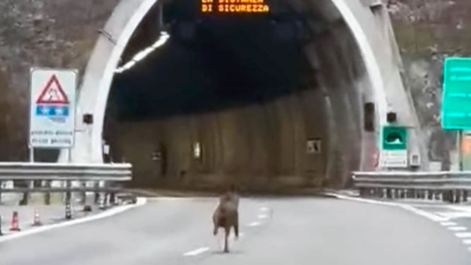 Ha sucedido en la autopista A24 que discurre por el túnel que atraviesa el Monte San Rocco, en los Abruzos italianos. Allí, los ocupantes de un vehículo cogieron el teléfono móvil para conseguir registrar la extraña situación que se estaban viviendo. Un animal corría por delante de los vehículos. Había conseguido entrar en la vía y se dirigía hacia un lugar llevando hacia allí un gran peligro para los conductores. Hablamos del túnel de San Rocco.