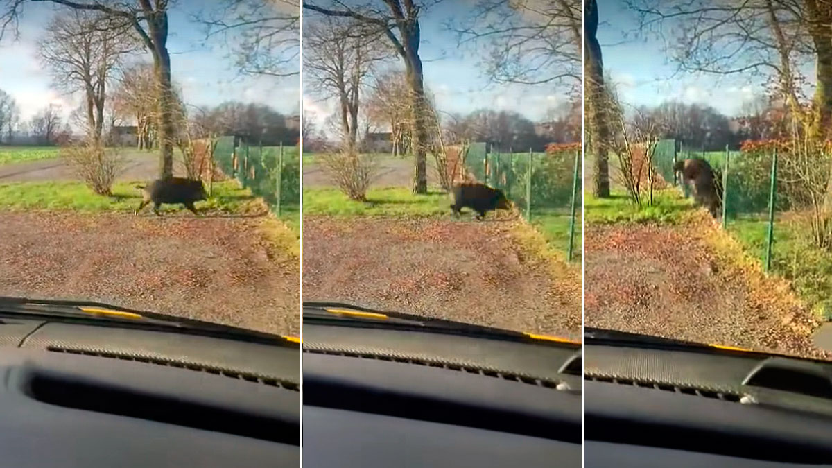 Tras el golpe, el jabalí queda desconcertado. Se vuelve para mirar al coche que parece ser el motivo de su prisa. Ha cruzado la carretera corriendo, con la vista fijada en el comienzo del bosque que está al otro lado de las mallas metálicas. Pero no contaba con la resistencia de la alambrada. Y, a pesar de que busca un agujero entre los hilos de hierro empujando con su jeta en distintos puntos, no lo encuentra.